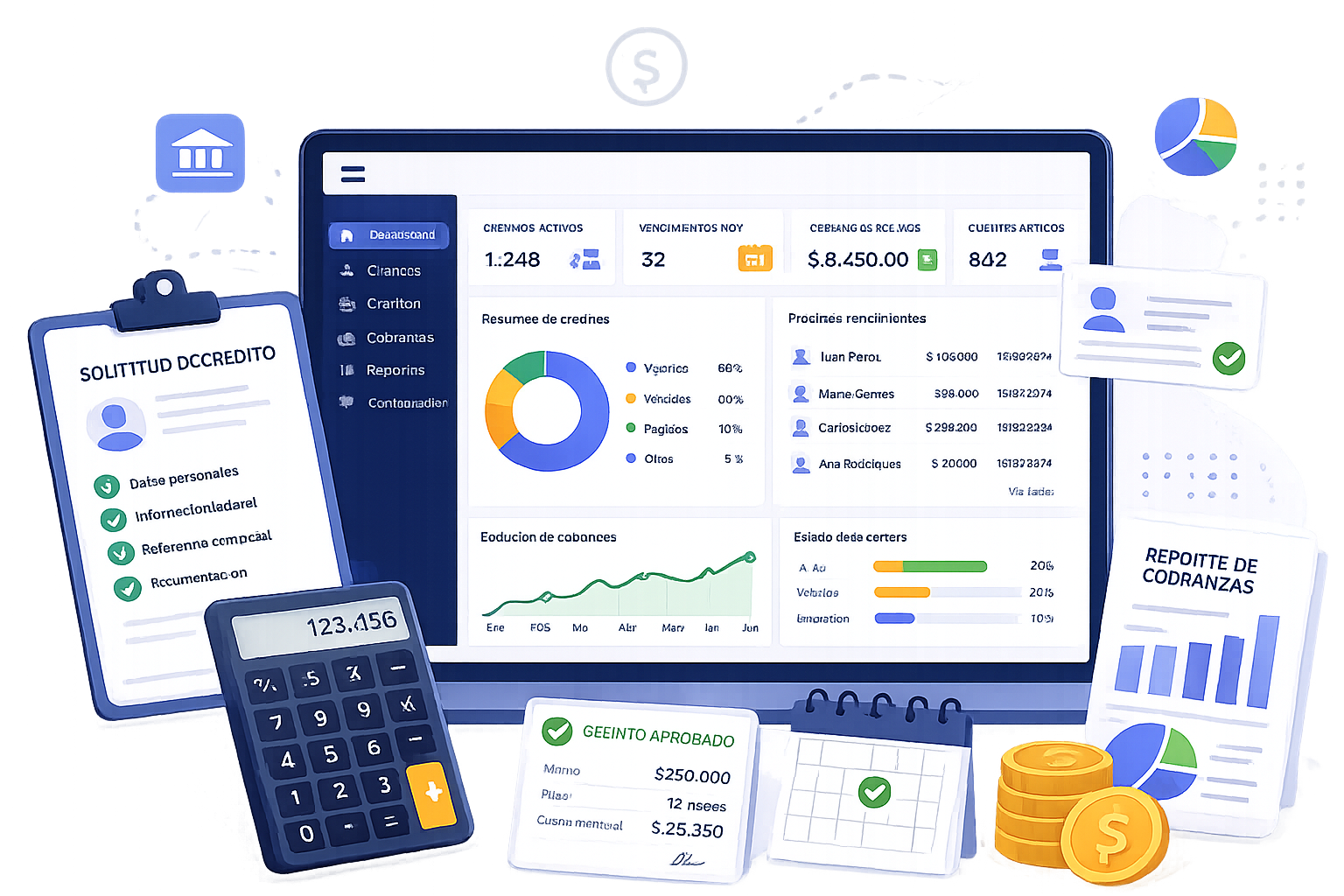Credicoin es un sistema de gestión diseñado para administrar créditos de forma ordenada, segura y eficiente. Permite centralizar clientes, préstamos, vencimientos y cobranzas en un solo lugar, mejorando el control de la operación y reduciendo errores. Facilita el seguimiento de cada crédito, optimiza la gestión diaria del equipo y brinda información clara para la toma de decisiones.